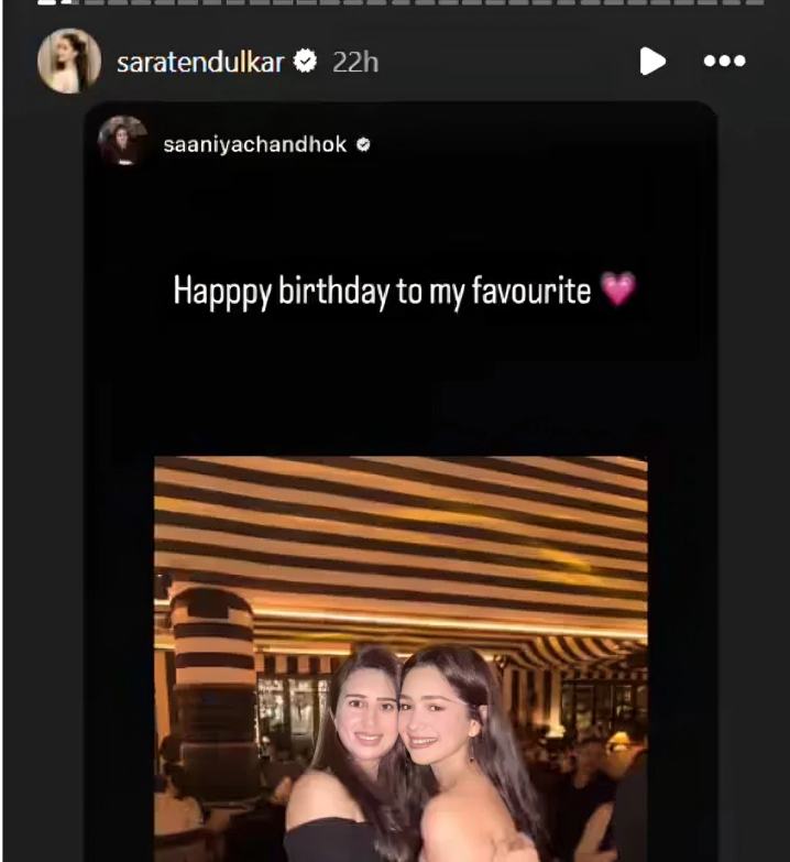 The birthday girl shared glimpses of the warm wishes she received from loved ones. Her brother Arjun Tendulkar and father Sachin Tendulkar sent her touching messages to mark the special occasion. Saaniya Chandhok, who is engaged to Arjun, also extended her heartfelt birthday greetings to Sara.